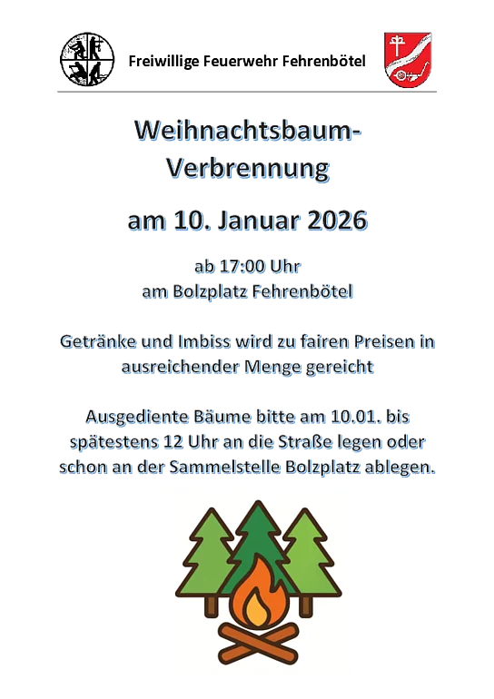 Rickling: Tannenbaum-Verbrennung in Fehrenbötel