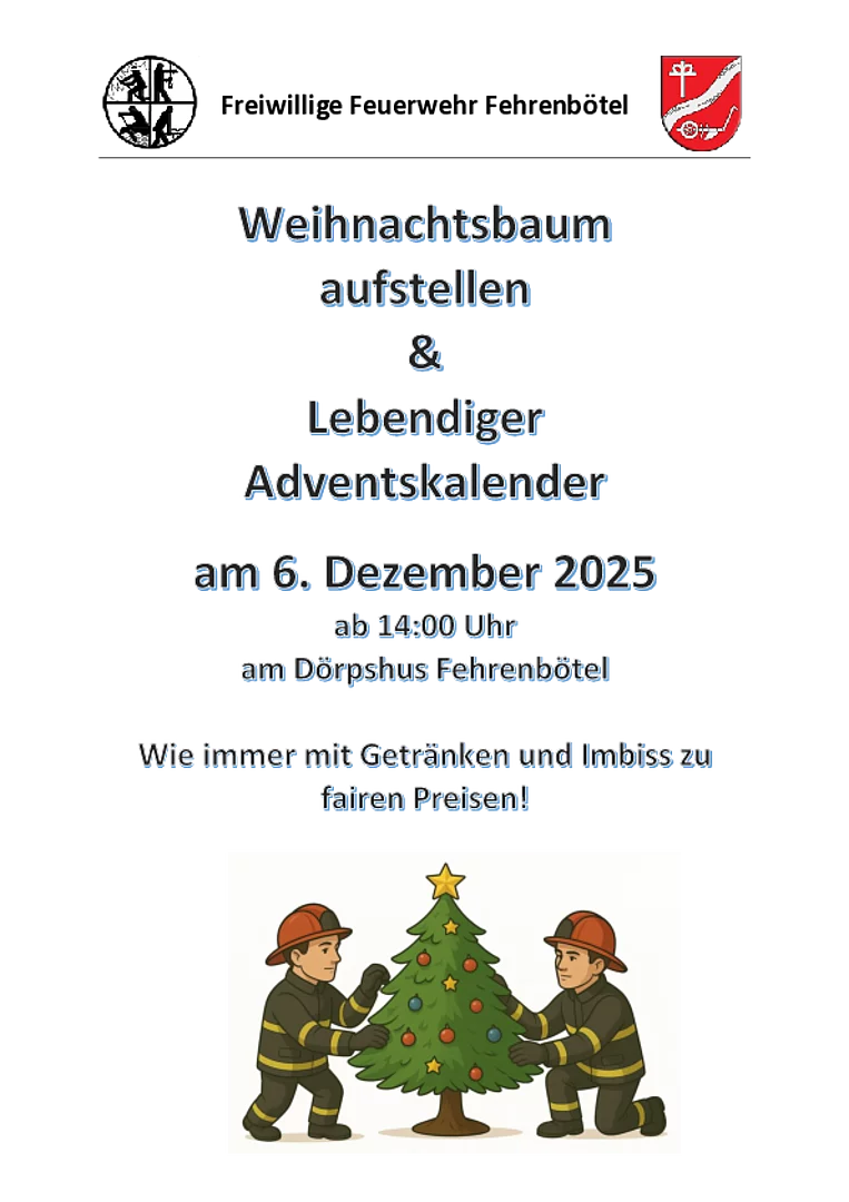 Rickling: Weihnachtsbaum aufstellen und Lebendiger Adventskalender
